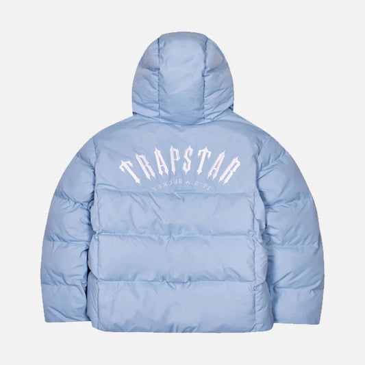 TRAPSTAR IRONGATE ARCH HOODED PUFFER - LIGHT BLUE / WHITE
